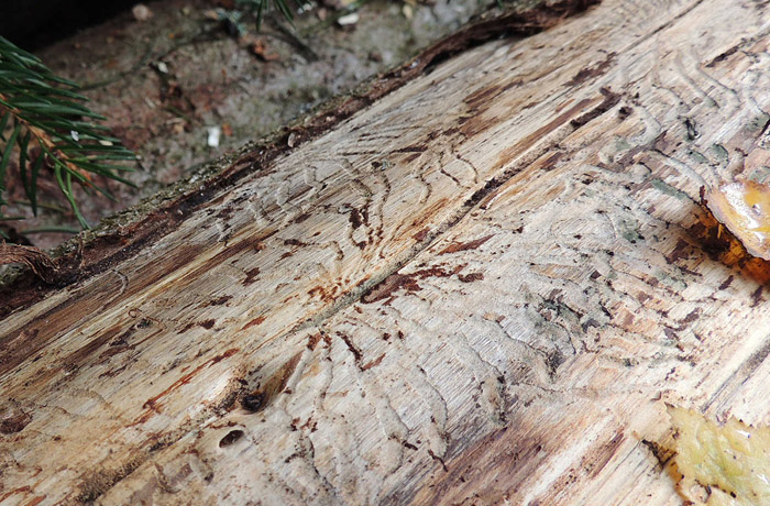 Pelin Asa, Judith Marlen Dobler, Peter Fratzl, Jessica Farmer, Johannes A. J. Huber, Florent Jouy, N… Pelin Asa Judith Marlen Dobler Peter Fratzl Jessica Farmer Johannes A J Huber Florent Jouy Nuri Kang Rahel Kesselring Anna Kubelík Karin Krauthausen Inka MaiSakiko Noda Stefan Neuhäuser Julia Rhein Robert Stock Kerstin Wolff and Karola Dierichs about this contribution Symbiotic Wood is an exploration on diversity and nonpredictability As humans share the natural world with others living and nonliving entities coexisting with forests and understanding wood means more than merely living with a useful material Lemke 2019 Jaque 2021 Here we consider spruce as a crucial example shared between bark beetles and humans among others Currently climate change in combination with monocultures is causing increasingly greater areas of forests to be affected by insects and fungi Statistisches Bundesamt 2022 Bentz et al 2022 The harvested material from these areas is often devalued economically Spruce forests are particularly susceptible in this respect as they are not able to adapt to droughtstricken soil with their shallow roots Puhe 2003 Netherer et al 2014 and due to monoculture insects can find hosts easily and spread quickly Hlásny et al 2019 Forests that include large areas infected with bark beetles are cleared prematurely to prevent the insects spreading further but the felled trees are often left on the forest floor or outside subject to the weather conditions because the amount may be larger than anticipated and thus difficult to transport store or process Hömberg and Kubelik 2023 During this time they might be further populated by other organisms or rot fungi often detectable through surface damage and discoloration Almost all the affected material processed by local sawmills is currently sold as highly devalued timber The material is mostly burned for energy extraction or sourced for packaging Although stains from beetle and fungal infestation are only aesthetic and do not change the wood’s properties if detected and stopped early Clay et al 2024 Hýsek et al 2021 the affected material is not preferred for sale Spruce monocultures were originally planned to make wood that would be fully predictable in its availability and properties for human use As a nonhuman agency with massive impact bark beetles render the predictability of timber harvesting almost impossible creating economical and logistical problems There is however something to learn from this in our damaged environments it will be necessary to find new modes of planting processing and harvesting Learning how to use infested wood will hopefully encourage human communities to embrace nonpredictability in designing wood products based on what is available Thus the current flourishing of bark beetles is confronting us with the need to envisage situated design concepts for coping with the diversity and lack of predictability caused by contamination Symbiotic Wood instigates a revaluing of wood as a material that we couse with other species a material that might be different from our expectations thus inviting new forms of design for “multispecies worlds” Tsing 2015 Our interdisciplinary team—material science cultural history art and computational design and construction— investigates this condition through a series of epistemic images unfolding symbiosis through three spatially articulated layers matter cognition and creation Layer 1 Matter Spruce wood is introduced in its ecosystem a forest in Feldbuch Franconia Germany The stem shows the socalled “galleries” of the bark beetle Ips typographus and the blue stain the beetle typically induces in the stem Layer 2 Cognition A layer presenting fundamental knowledge from material science and cultural history about beetle and fungiaffected wood It includes results from imagebased analysis methods conducted at the Max Planck Institute of Colloids and Interfaces as well as historical documents on bark beetles that laid the foundations for applied forest entomology These are complemented by contemporary art works on artistic practices related to places habitats and ecosystems by Rahel Kesselring as well as transience in plantworlds by Nuri Kang with Karin Krauthausen Layer 3 Creation This layer features elements from both artistic and designbased approaches to beetle and fungiaffected wood Wood Kinship is a design ethnography Dobler 2025 following the early traces of an infested spruce forest It features prints made from the beetle galleries by Anna Kubelik Design studies on architectural material systems that investigate how the material anisotropy and perceived weakness of beetle and fungiaffected wood can be used to build a spatial structure that fulfills different architectural performance criteria credits authors Pelin Asa17 Judith Dobler57 Peter Fratzl17 Jessica Farmer7 Johannes A J Huber3 Florent Jouy6 Nuri Kang57 Rahel Kesselring27 Anna Kubelík7 Karin Krauthausen7 Inka Mai47 Sakiko Noda4 Stefan Neuhäuser4 Julia Rhein15 Robert Stock27 Kerstin Wolff47 Karola Dierichs157 1 Max Planck Institute of Colloids and Interfaces MPICI 2 HumboldtUniversität zu Berlin HU 3 Luleå University of Technology LTU 4 Technische Universität Berlin TU Berlin 5 Weißensee School of Art and Design Berlin KHB 6 Eberswalde University for Sustainable Development HNEE 7 Cluster of Excellence Matters of Activity MoA photo credits see iconography and references below copy editing Bronwyn Mahoney acknowledgments The authors acknowledge the support of the Cluster of Excellence »Matters of Activity Image Space Material« MoA funded by the Deutsche Forschungsgemeinschaft DFG German Research Foundation under Germany8217s Excellence Strategy—EXC 2025—390648296 references and rights illustration copyrights photos reproduced with permission Pelin Asa Bark Beetle Galleries on a Spruce Tree Photo © Pelin Asa Cluster of Excellence »Matters of Activity« Max Planck Institute of Colloids and Interfac